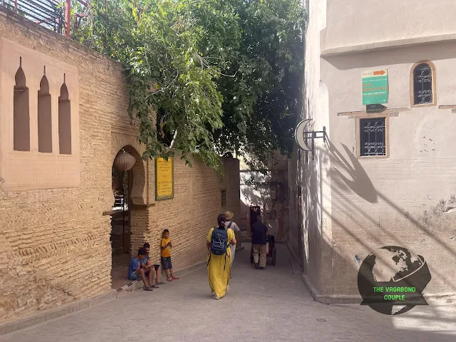 We head west towards Derb Sidi Moussa and one of the world's best preserved caravanserais on the ancient Silk Road. The narrow street opens up slightly here, a welcome relief after the tight confines around the mausoleum.